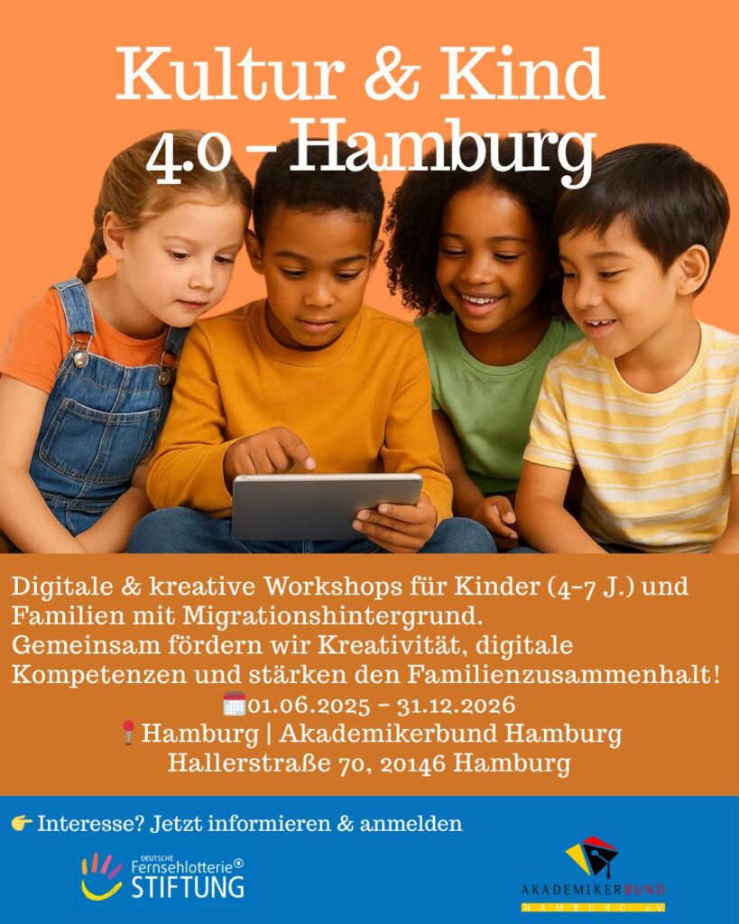 Kultur & Kind: 4.0 – Hamburg ist ein soziales Empowerment-Projekt des Akademikerbund Hamburg, das vom 01.…